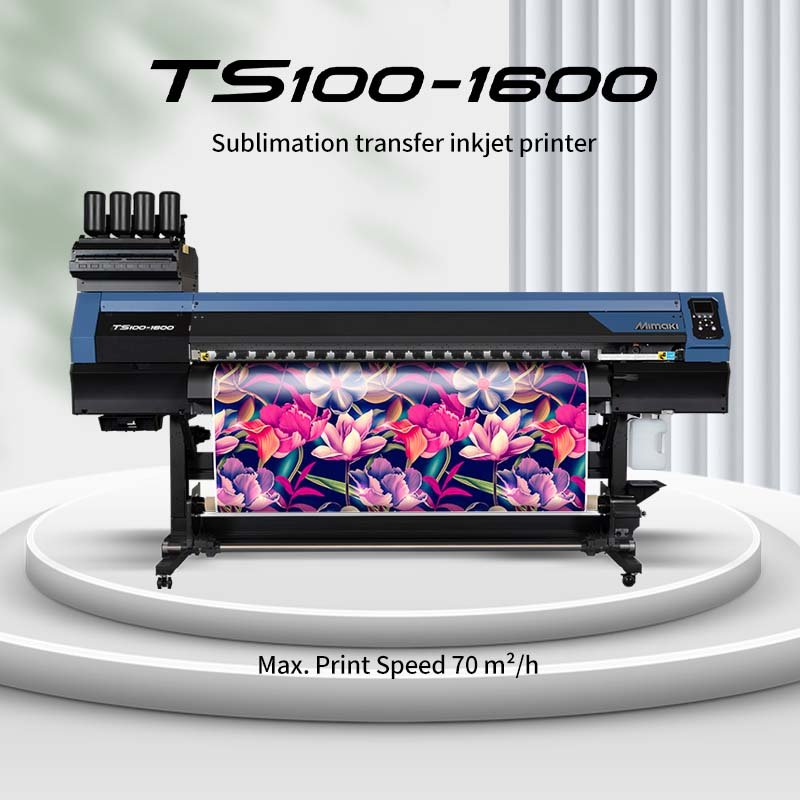 The TS100-1600, equipped with two newly developed printheads, is a thermal sublimation transfer inkjet printer designed to consistently deliver high quality, high productivity, and stable operation. Its high-speed printing speed is approximately twice that of conventional textile printers.